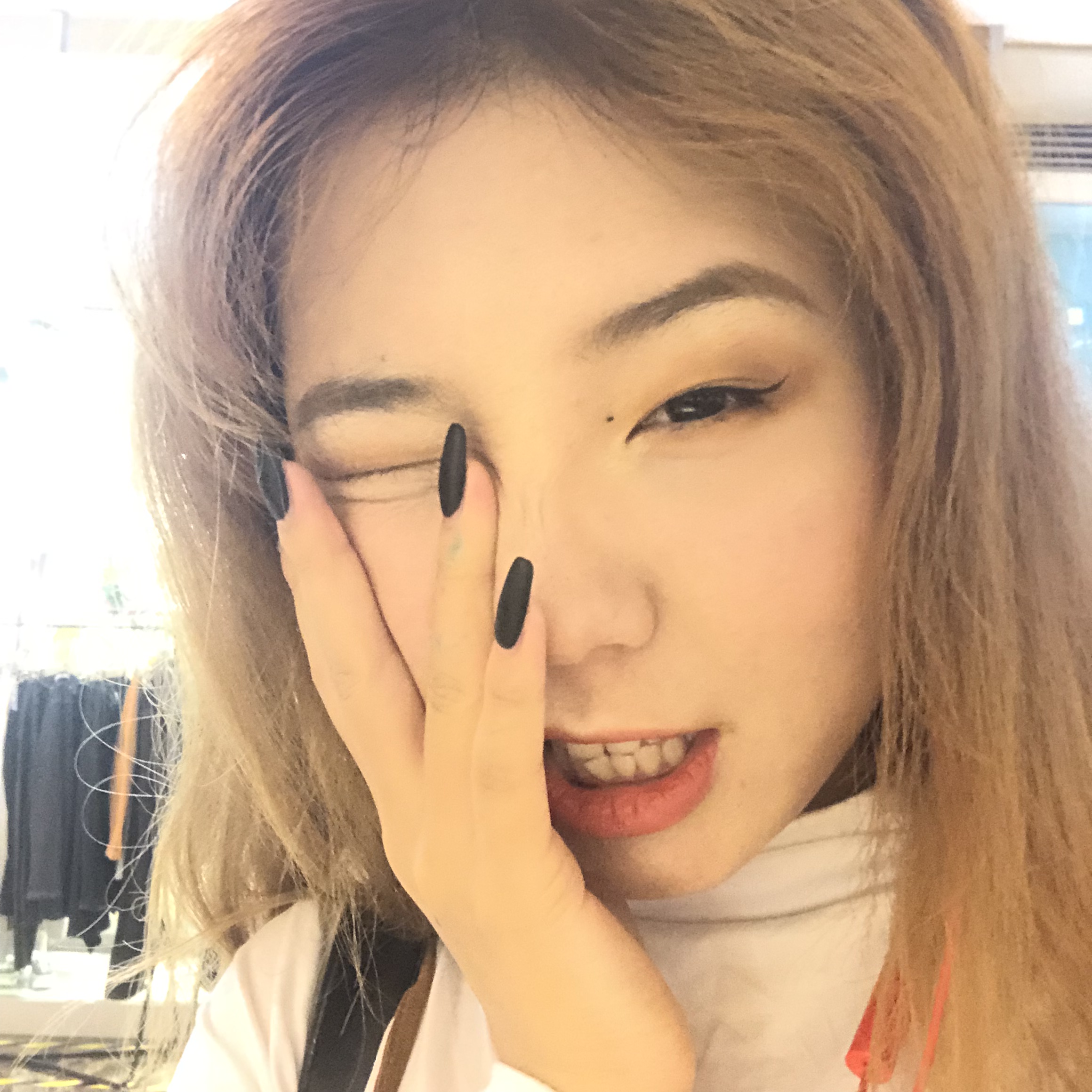 My own fashion Just what I think, ha ha ha ha ha My nail and my cat My new skirt My eye makeup and hat